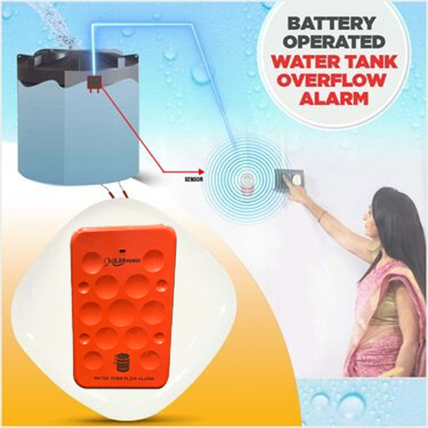 MILAN POWER WATER ALARM BELL ORANGE
